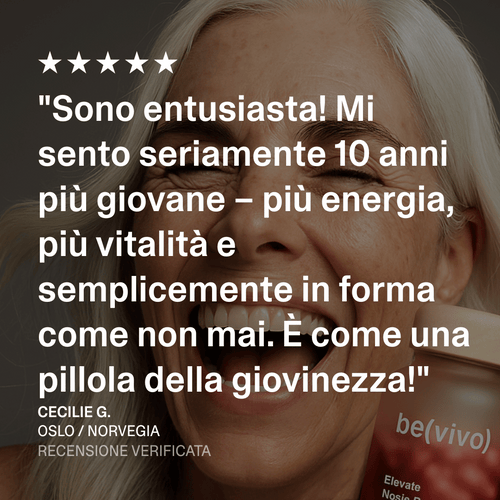 "Abbiamo creato questo prodotto per aiutare le persone a invecchiare meglio e vivere con più forza. Ed è esattamente ciò che fanno i nostri clienti con il nostro esclusivo booster di NAD⁺."